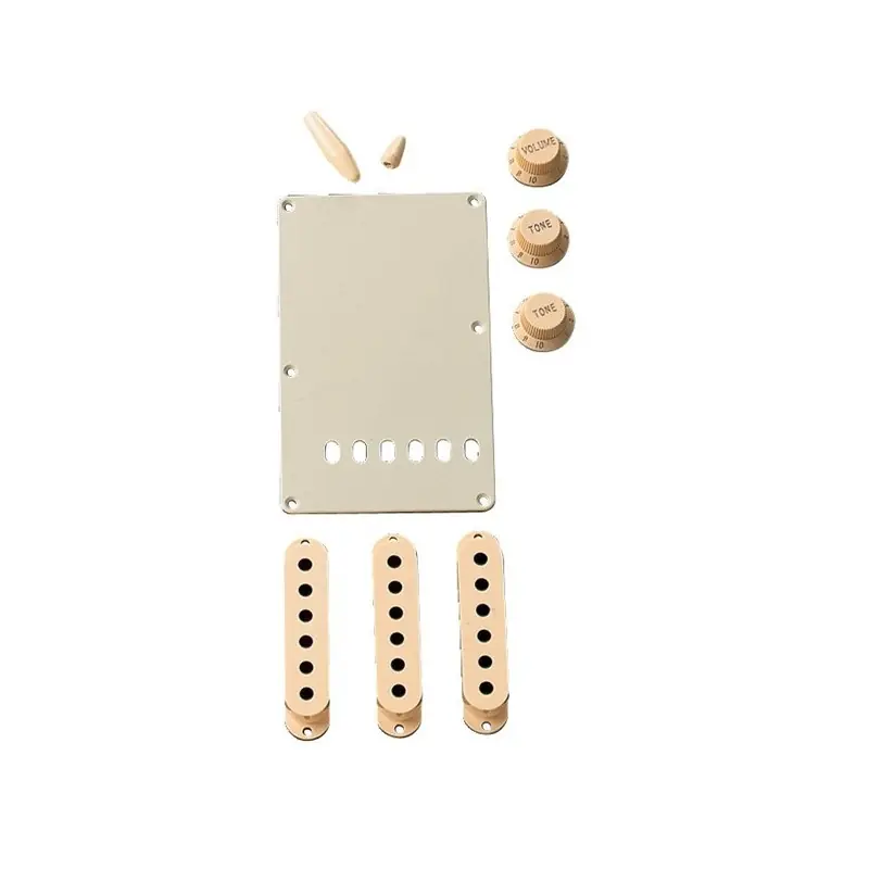 Balení obsahuje: volume a tone control knoby, pickup switch tip a tremolo arm tip, tremolo backplate a rámečky na snímače (rámečky nepasují na SCN™, N3™ a Noiseless™ snímače).