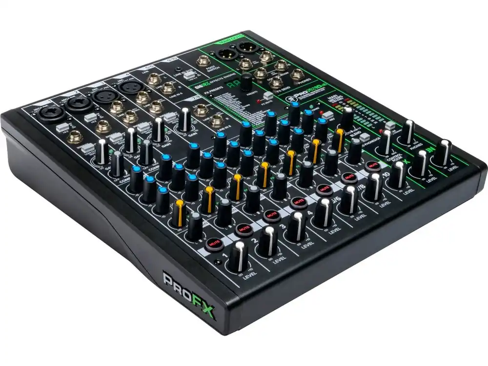 Konkrétně ProFX10v3 je desetikanálový mixážní pult se čtyřmi Onyx preampy a GigFX zvukovým enginem. Zvuk lze nastavit pomocí intuitivních ovladačů a třípásmového ekvalizéru na každém kanálu, kromě dvou Kombi XLR/Jack vstupů disponuje pult také Hi-Z stupem pro přímé zapojení kytary/baskytary, dvěma XLR vstupy, dvěma stereo Jack vstupy a Line IN pro hudební přehrávač nebo mobilní zařízení. Dále zde najdete výstup pro monitory, hlavní výstup, výstup pro sluchátka a vstup pro footswitch.