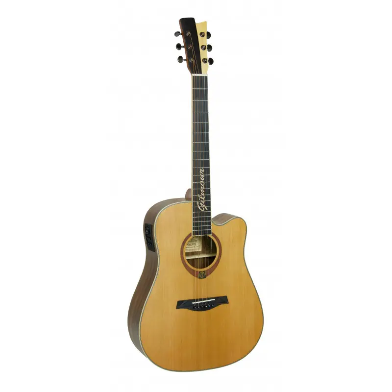 Elektroakustická kytara typu Dreadnought se širším krkem 48 mm, výřezem a přední deskou z výběrového masivního cedru a zadní deskou a luby z ořechu. Krk je vyroben z mahagonu. Na hmatník je použit palisandr. Šířka nultého pražce 48 mm. Nástroj je osazen značkovou elektronikou Fishman Presys Plus. Unikátnost tohoto nástroje ovšem spočívá v opravdu výjimečném zvuku, který nástroji propůjčuje korpus vyrobený z výběrového cedrového dřeva a zadní desky z vrstveného ořechu. Podlehněte opravdu vyjímečnému hutnému zvuku kytary Gilmour Woody.