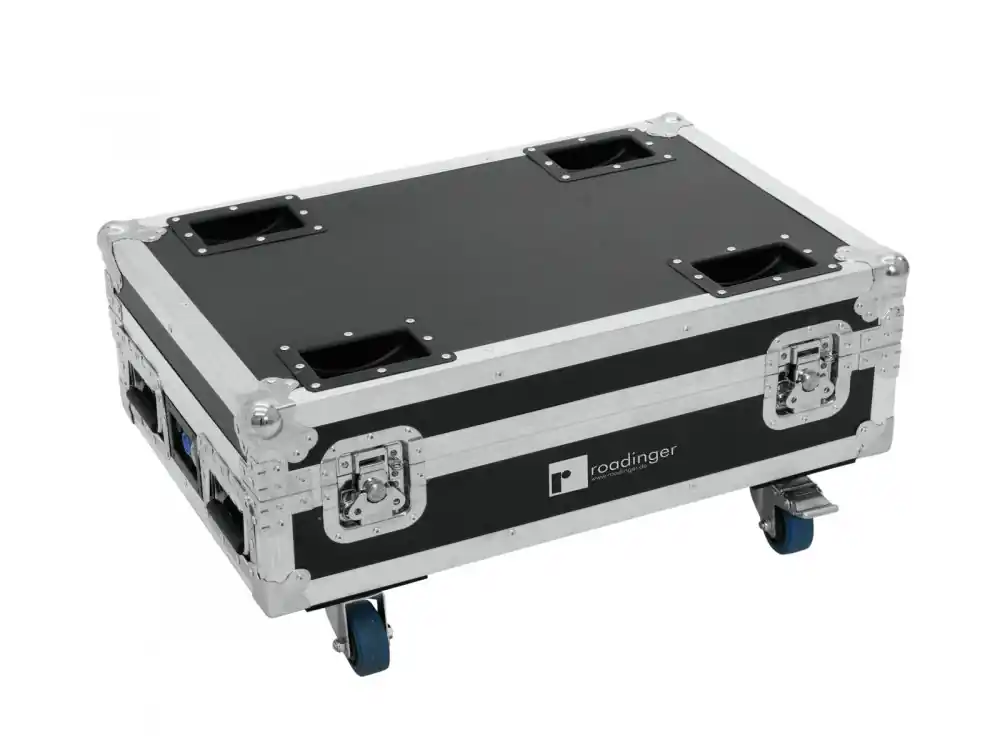 Kvalitní přepravní case z vícevrstvé 9mm překližky k přepravě (4x 41700120) s možností nabíjení Povrchová úprava černé lamino. Kvalitní vnitřní polstrování z černé plsti. 2 velké motýlkové zámky (bez možnosti uzamknutí), 4x výklopná chromovaná madla. Hrany jsou opatřeny hliníkovými 30 mm profily se zaoblenými hranami, velké ocelové zakulacené rohy. 4 kolečka (100 mm, 2 s brzdami). Vyrobeno v Evropě.