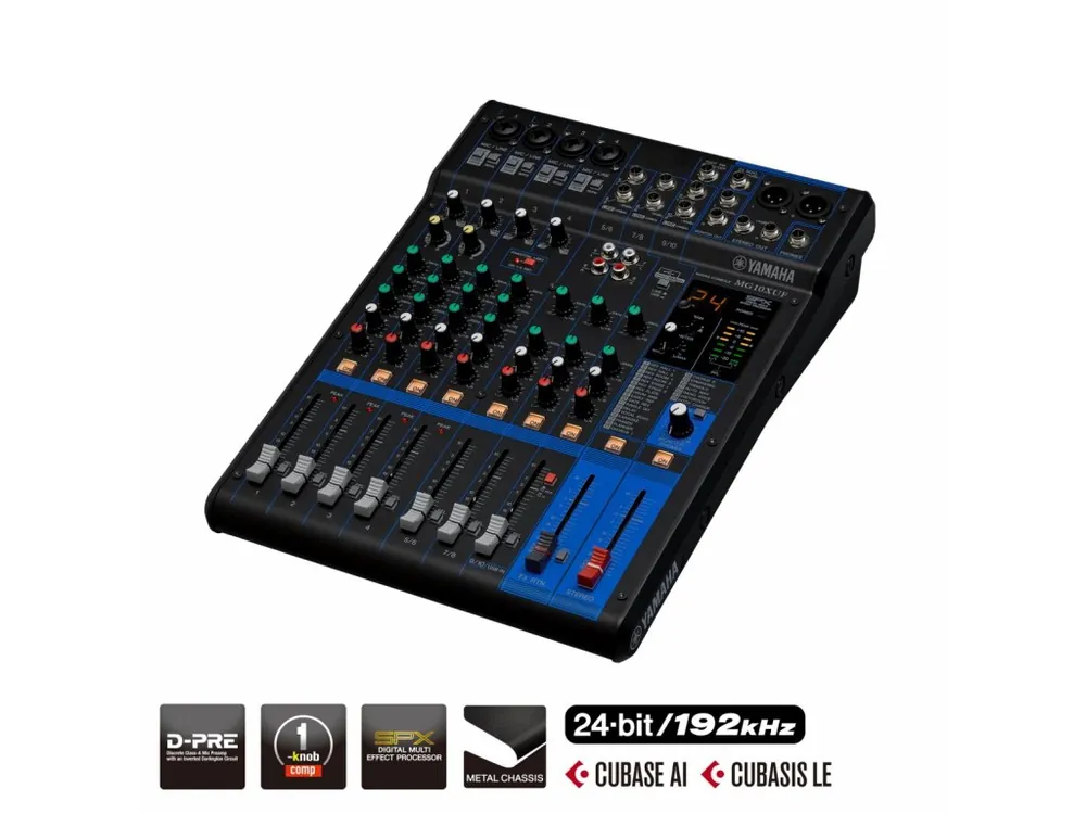 Yamaha MG10XU je mixupult s fadery (tahové potenciometry), efekty a USB konektoremu z již třetí generace oceňovaných analogových mixů firmy Yamaha.