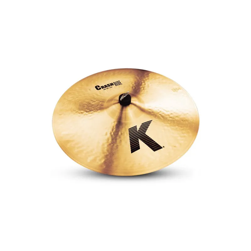K Crash Ride je středně tenký činel s povrchovou úpravou Traditional, temným hlubokým zvukem a středně dlouhým sustainem.