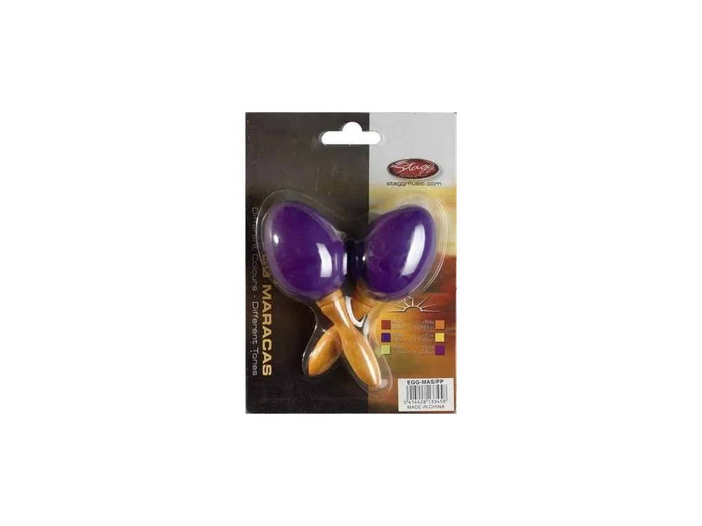 Maracas vajíčka, 2 kusy, krátká rukojeť, purpurová. Nevhodné pro děti do tří let.